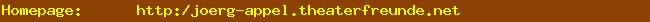 Jörg Appel schrieb am 20.07.2007 um 14:44:25 Uhr: Hallo an alle Besucher meiner Homepage, ich möchte euch herzlich begrüßen und würde mich über einen Eintrag in meinem Gästebuch freuen. Ansonsten viel Spaß beim Rumstöbern.